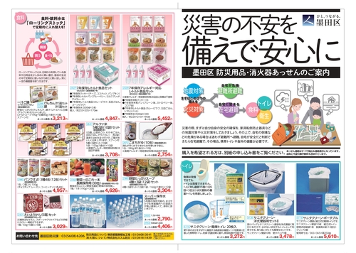墨田区では一般家庭や事業者向けに、防災用品や消火器あっせんのお知らせをしています。