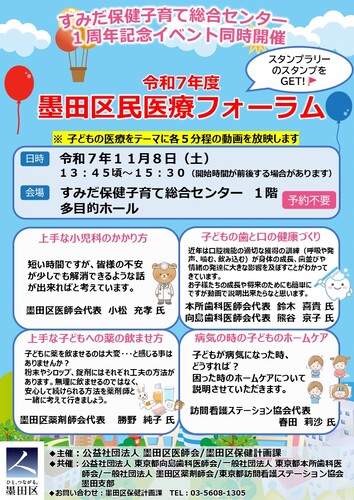 今年度は、すみだ保健子育て総合センター1周年記念イベントにて「子どもの医療」をテーマに、医師や専門家による動画の上映を行います。