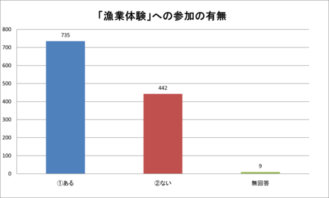 質問1 幼少期からこれまでに「漁業体験」に参加したことがありますか?(○は1つ)