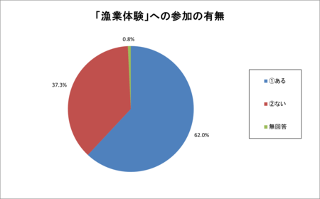 このアンケートの「漁業体験」とは、海や河川・湖沼で行う釣りや魚のつかみ採り、地引網、潮干狩り、貝採りなどの体験を言います。