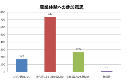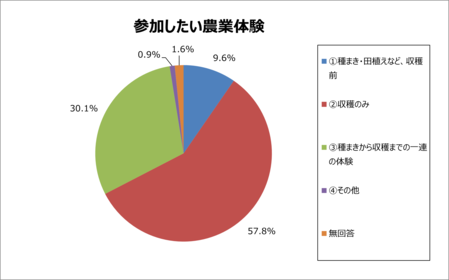 このアンケートの「農業体験」とは、「野菜や果物の栽培・収穫、田植え、稲刈り」などの体験のことを言います。