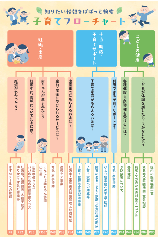 2 P1~5 はじめに 行政ガイドインデックス 子育てフローチャート(PDF:8,118KB)