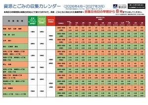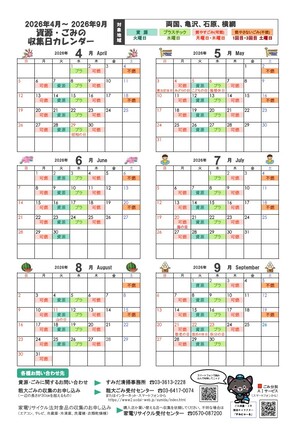 地域別収集日カレンダーファイルダウンロード(2026年4月から2026年9月まで)