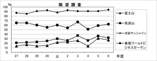大気汚染状況を把握するには、各種汚染物質を測定する方法以外に、一定の対象物を眺望する方法があり、平成3年4月から富士山等の観測を庁舎14階で行っています。