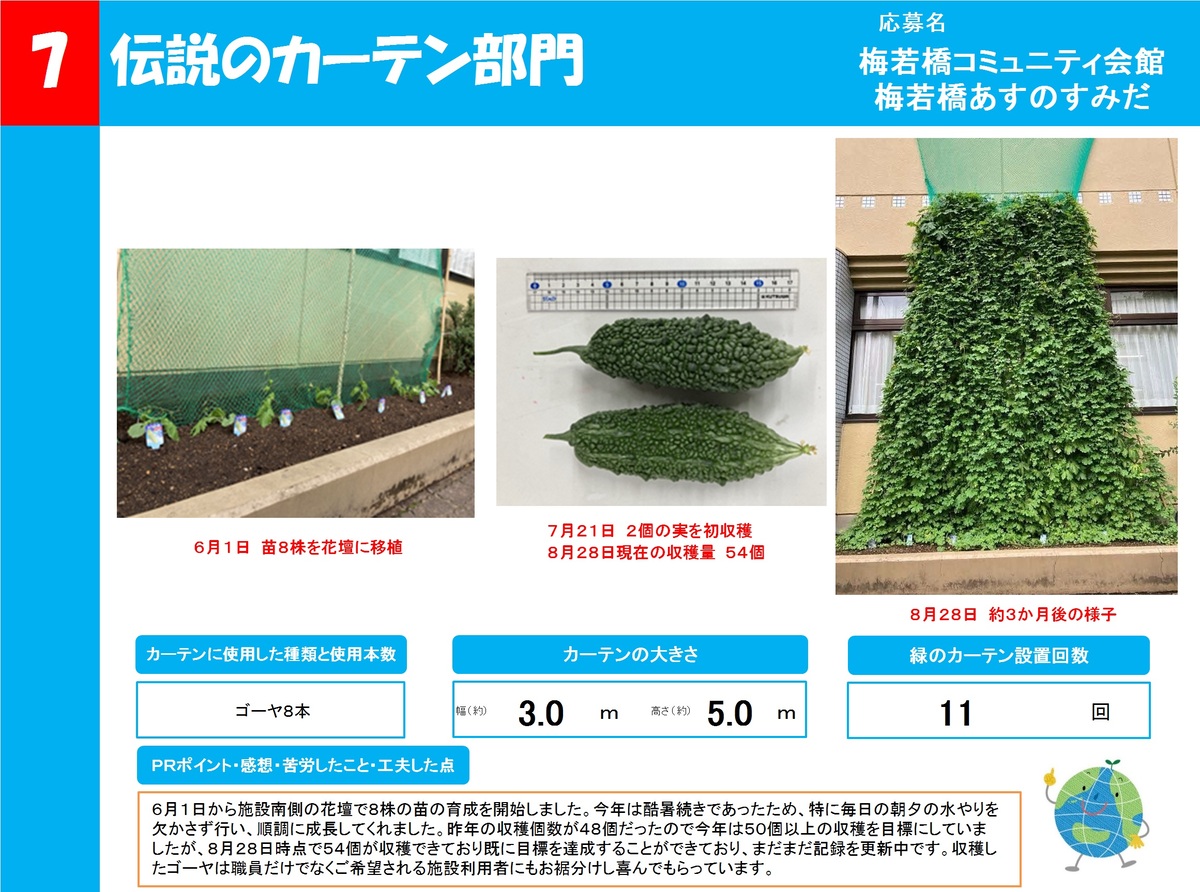 緑のカーテンコンテストのおいて、過去3回以上入賞経験のある方の7作品をご紹介します。