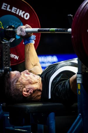 オリンピック競技のウエイトリフティングとは異なり、専用の台に仰向けになって行うベンチプレスのみで競われます。