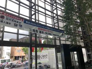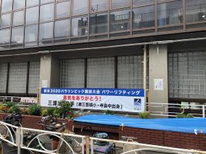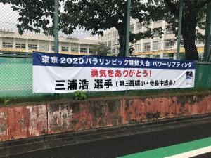 本区では、東京2020パラリンピック競技大会パワーリフティング日本代表の三浦浩選手の健闘を称える横断幕を作成し、墨田区役所と三浦選手の出身校である第三吾嬬小学校と寺島中学校に設置しました。