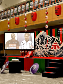 岡澤選手、原田選手ともに、令和6年5月18日すみだボクシング祭り2024では、応援ブース設置や300名以上の応援メッセージ受付のほか、海外合宿中のウズベキスタンからリモート出演し、たくさんの区民の前でパリ2024大会への意気込みを語っていただきました。