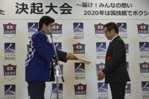 集めた署名は、11月29日に実施した決起大会で、山本区長から日本ボクシング連盟に提出しました。