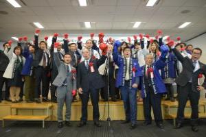スペシャルゲストとしてガッツ石松氏も駆けつけ、「力を合わせて頑張ろう!」と心を一つにしました。