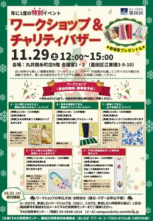 1日だけの限定開催!ワークショップ&チャリティバザー | 墨田区消費者団体連合会(あしたば、アズール、コープみらいさくらんぼ、ひまわりの会) | すみだ産業会館 |