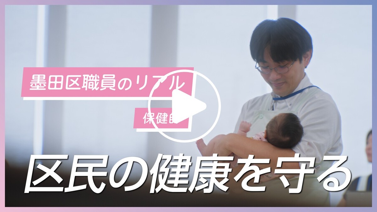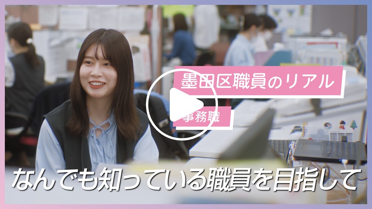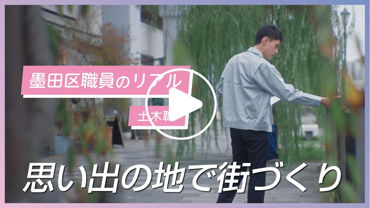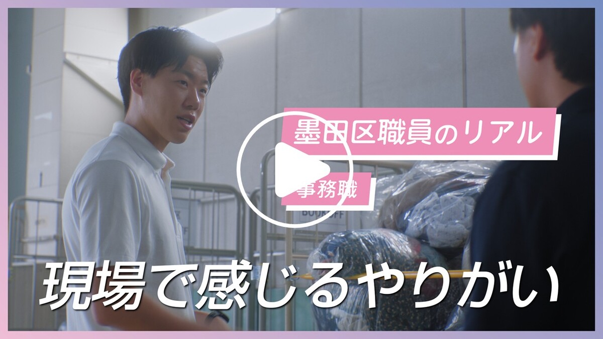 事務、建築、土木、福祉、保健師、衛生監視、保育士の計7職種8名の職員が登場し、区民の方と向き合う姿、現場の様子、仕事への想いなど「墨田区職員のリアル」をお届けします!
