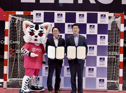 区は、10月9日(木曜日)にジークスター東京とホームタウン・スポーツチーム連携協定を締結しました。この協定は、区とジークスター東京が互いに有する資源を最大限に活用し、積極的な連携・協力を図ることで、区民のスポーツに対する関心を深め、区のスポーツ振興の発展に寄与することを目的としています。これまで、フウガドールすみだ、FC東京バレーボールチーム(令和4年5月解消)と同様の協定を結んできました。
