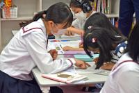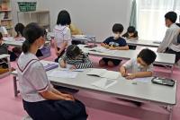5月24日には、この取り組みのきっかけとなる提案を行った錦糸中学校の駒宮さんも参加し、両国中学校のボランティア部4名と一緒に、学童クラブの小学生11人の宿題をサポートするなど、交流を深めました。