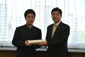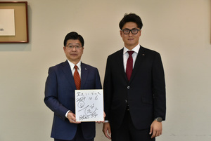 楽天イーグルスの日當直喜選手が表敬訪問してくれました(令和6年12月6日)