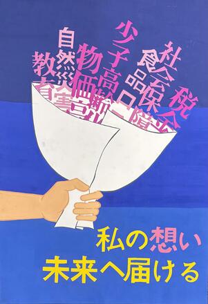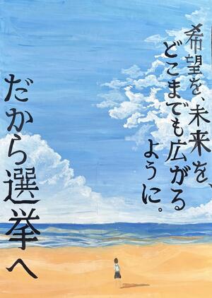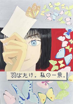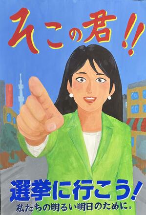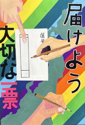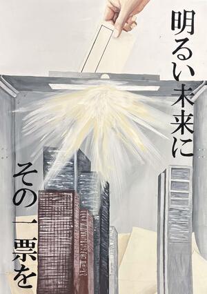 見ている人に力強いメッセージを訴えかける作品です。選挙権を得る段階である高校生として、