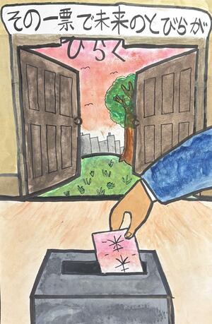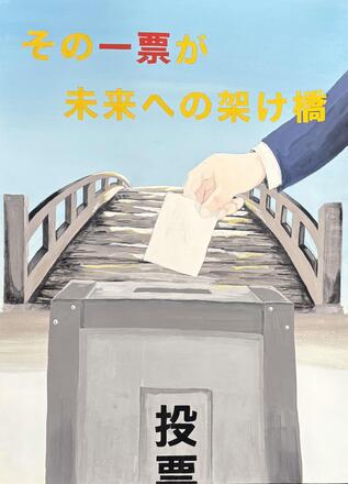 色は投票箱とつながるかのように、同系色です。小さな一票が、未来への懸け橋となる大切さを