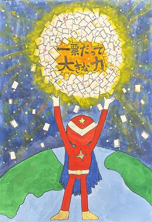 「一票だって大きな力」の一人一人の票が集まって宇宙で強い輝きを放っている様子は
