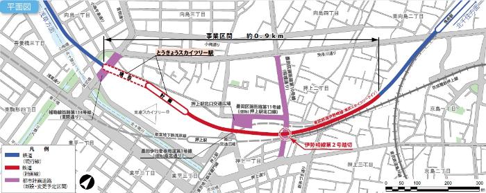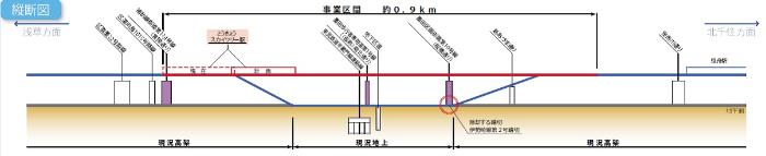 本事業は、東武鉄道伊勢崎線(東武スカイツリーライン)とうきょうスカイツリー駅付近の約0.9kmの区間について鉄道を高架化するものです。