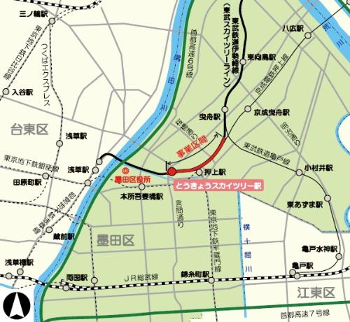 とうきょうスカイツリー駅付近(墨田区押上二丁目から墨田区向島一丁目まで)