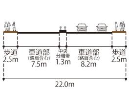 | 現況幅員(車線数) | 22.0m(4車線) |