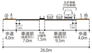 | 計画幅員(車線数) | 26.0m(4車線+左折車線) |