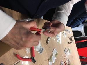 (2)ラジオペンチを用いてアクセサリーをつけています。