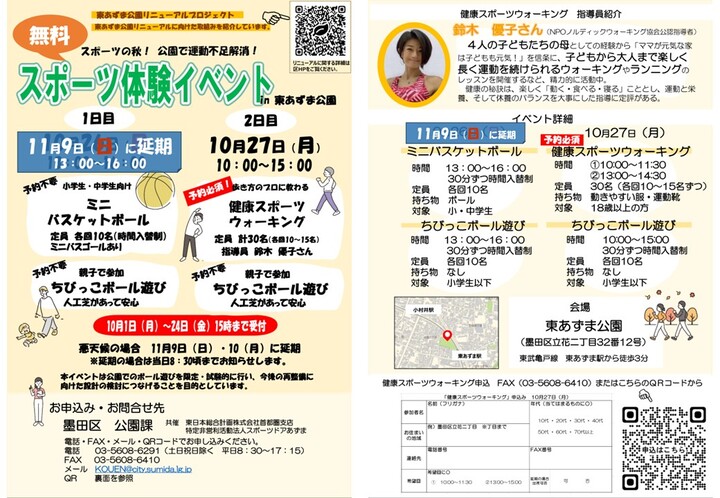 雨天予報のため、10月26日(日曜日)のイベントは、11月9日(日曜日)に延期します。