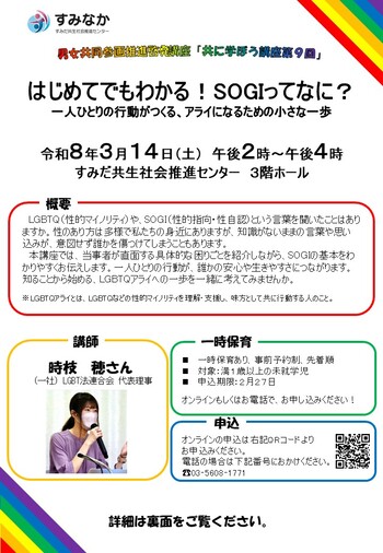 本講座では、当事者が直面する具体的な困りごとを紹介しながら、SOGIの基本をわかりやすくお伝えします。一人ひとりの行動が、誰かの安心や生きやすさにつながります。知ることから始める、LGBTQアライへの一歩を一緒に考えてみませんか。