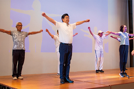 また、ステージでは千葉大学予防医学センターの井手先生の講演が行われたほか、区内で活動するグループによる中国の健康体操「