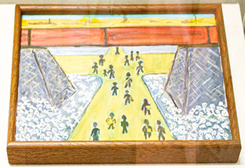 資料館には空襲に関する資料が多く展示されていて、それらは寄贈されたものが中心です。空襲体験画は、2003年に資料館がメディアを通じた呼び掛けを行ったことで集まり、約100人から、合計で300枚ほどの絵が寄せられました。