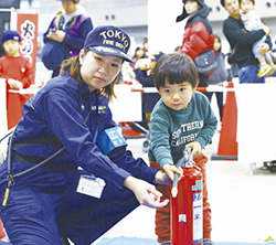 訓練を体験して、簡易トイレやクラッカー、アルファ米などの景品をゲット!