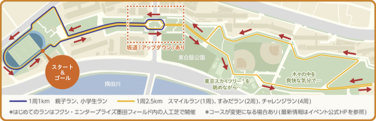 | すみだラン ★★ | 5キロメートル | 午後0時半 | 高校生以上 | 2,000円 |