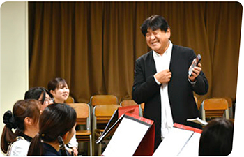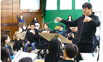 令和4年度に、世界で活躍する指揮者の佐渡 裕氏が「すみだ音楽大使」に就任しました。区内での文化芸術活動を更に盛り上げるために活動するほか、区内の学校を訪問し、直接音楽指導などを行うアウトリーチ活動も定期的に実施しながら、「音楽のまち すみだ」の魅力を広く発信しています。