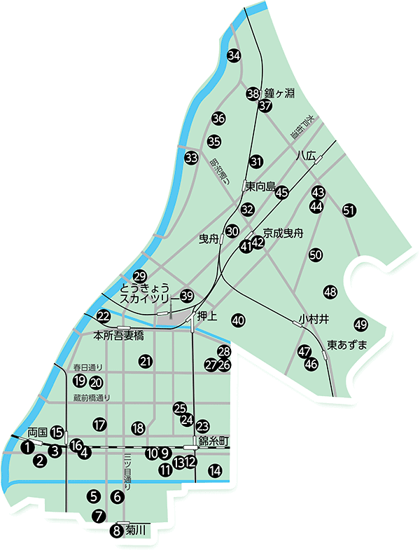 | (22)墨田区役所 | 吾妻橋一丁目23番20号 |