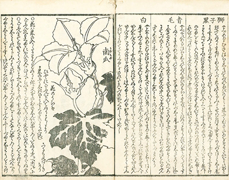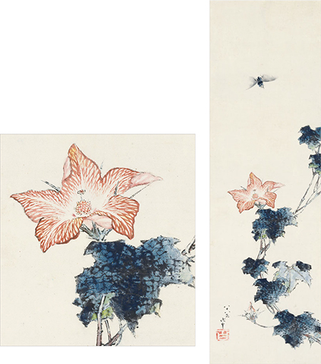 また、上記で紹介した「画本彩色通」二編には、南瓜の花の彩色方法が解説されており、本図で描いた経験が「画本彩色通」に反映されています。本作も、「開館10周年記念 ひらけ、絵手本!“北斎漫画”エトセトラ」の前期(4月19日まで)で展示しています。